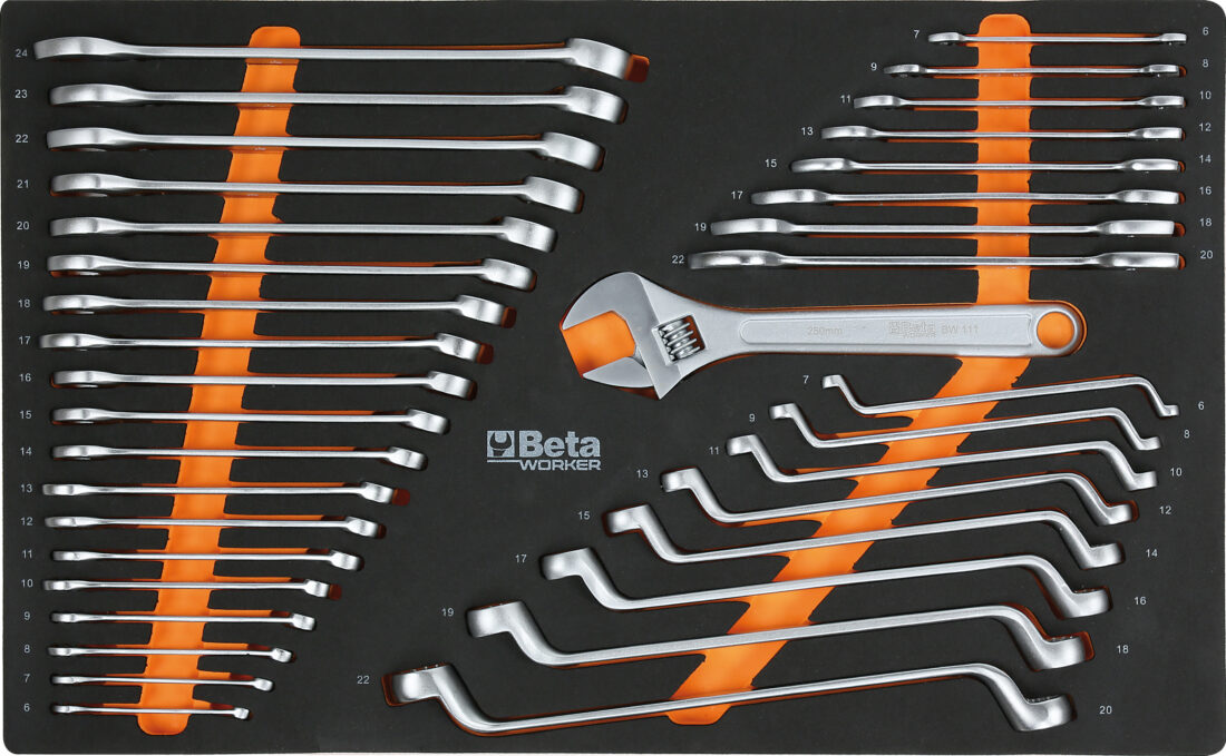 - Chiavi a forchetta doppie: 6×7-8×9-10×11-12×13-14×15-16×17-18×19-20×22 mm.