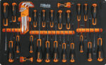 Comoda cassettiera mobile con 7 ampi cassetti, completa di 240 utensili assortiti alloggiati in termoformati morbidi in EVA, creando un ambiente di lavoro più ordinato. Dotata di 4 ruote con freno meccanico.