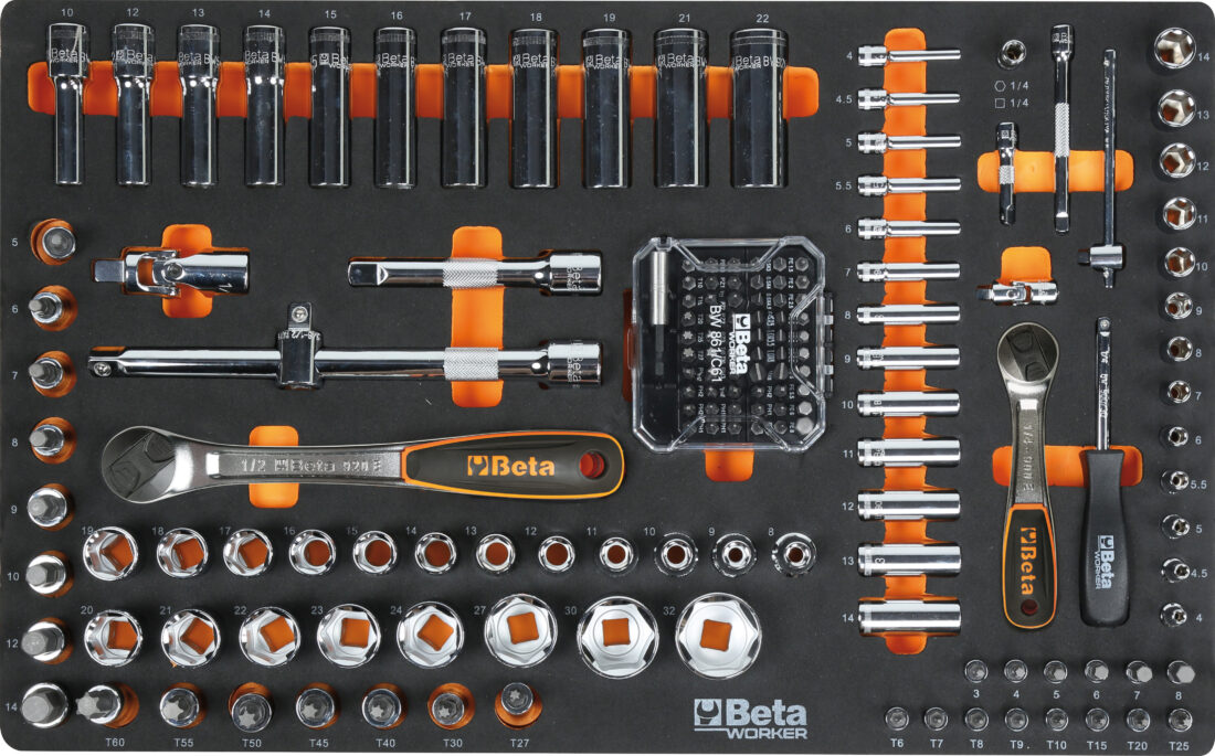 - Chiavi a bussola esagonali 1/2″: 8-9-10-11-12-13-14-15-16-17-18-19-20-21-22-23-24-27-30-32 mm.