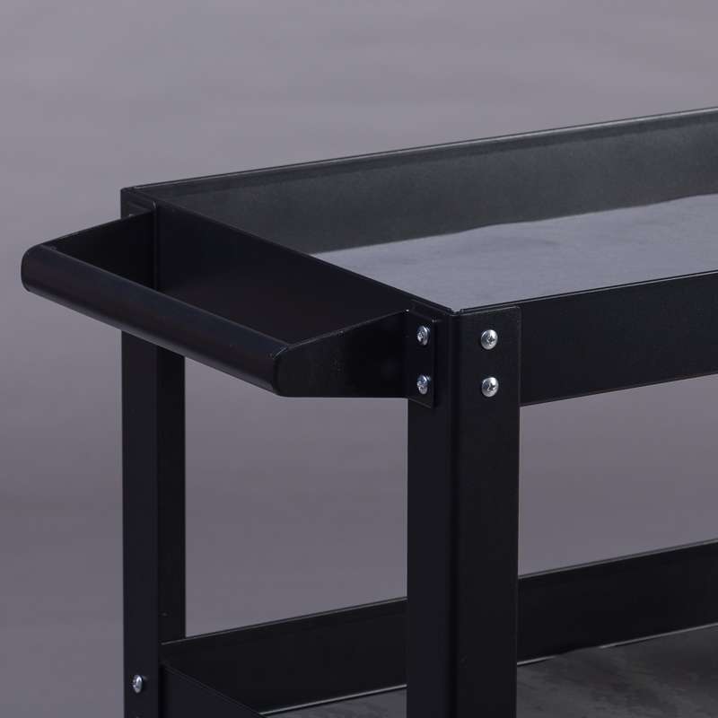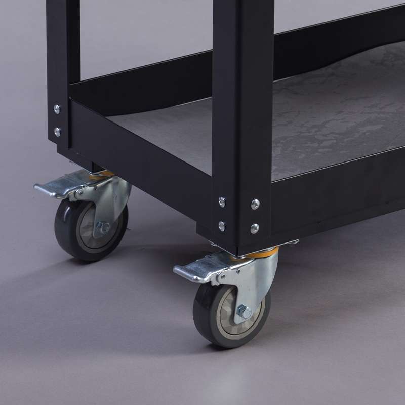 Carrello di trasporto per utensileria, telaio a 3 piani in acciaio verniciato suddiviso in 3 capienti superfici di carico con tappeti in gomma anti olio. Favorisce l’attività nelle piccole/medie lavorazioni, anche in ambienti ristretti come ad esempio i furgoni da lavoro.