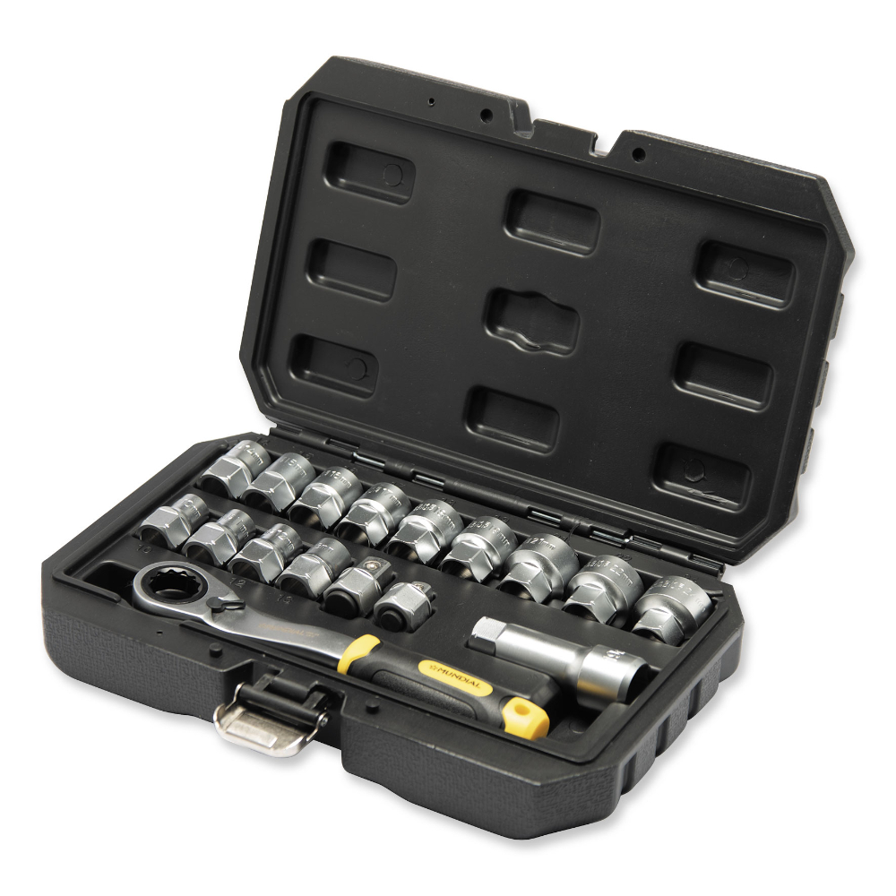 Set cric e 17 bussole 3/8 ribassate con foro passante 1559.038 Mundial