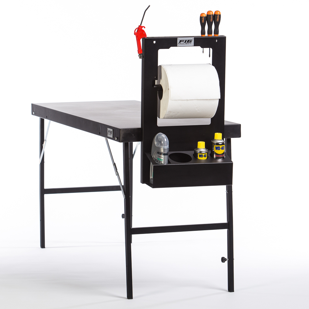 - Questo accessorio è infatti utile sul campo gara, ma anche in officina grazie alla speciale staffa da muro che riporta le asole di fissaggio ovunque ti serva: in officina, in garage o all’interno del furgone.