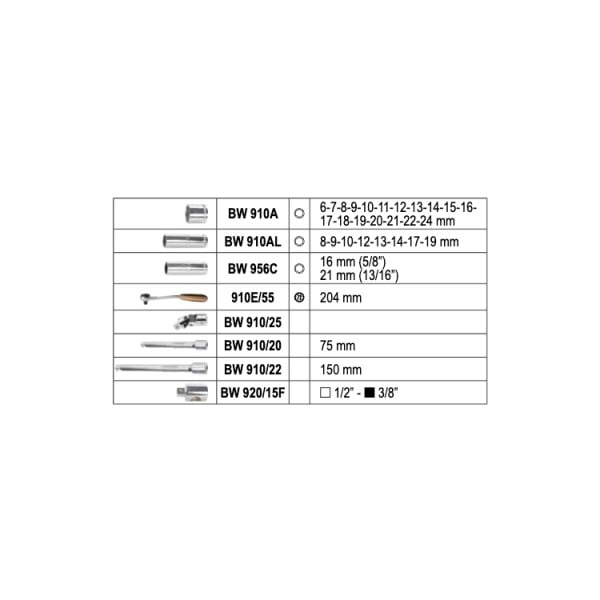 Valigia set bussole 1/2″ Beta BW 923E/c25 25 pezzi